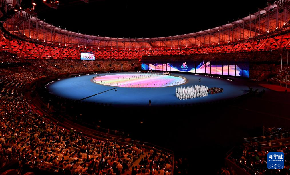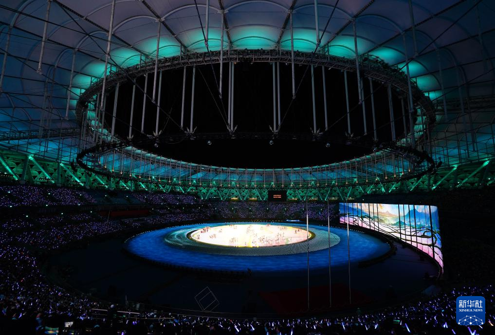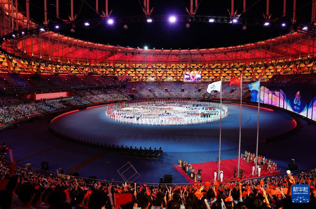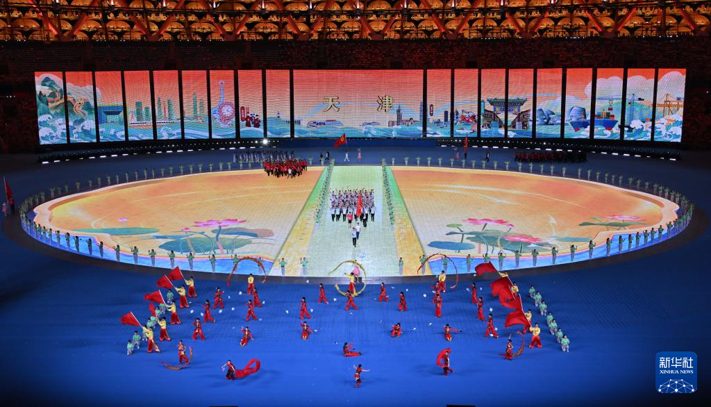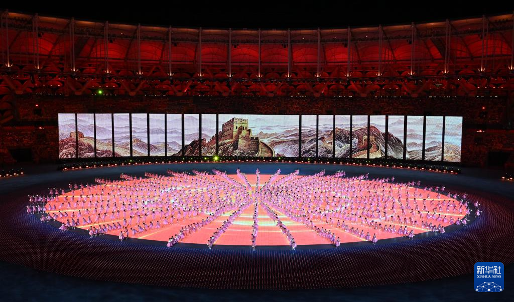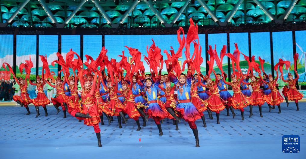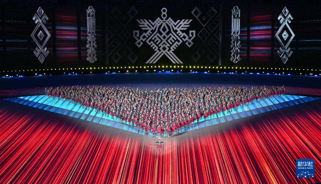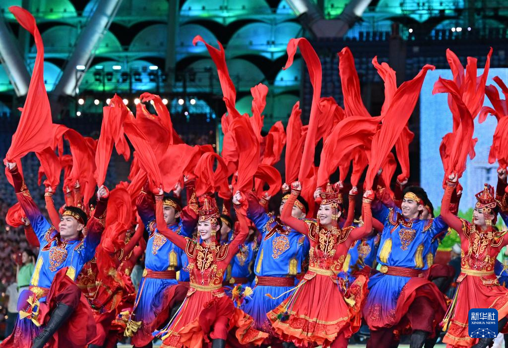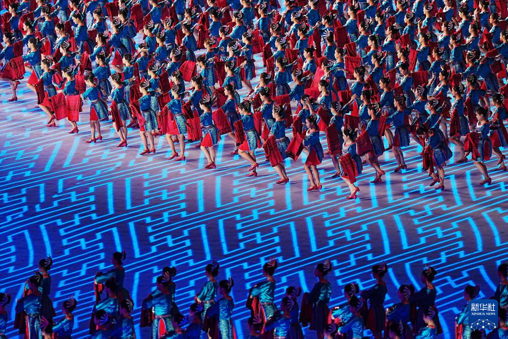 11月22日,中華人民共和國國旗、中華人民共和國少數民族傳(chuan) 統體(ti) 育運動會(hui) 會(hui) 旗和中華人民共和國第十二屆少數民族傳(chuan) 統體(ti) 育運動會(hui) 會(hui) 旗在開幕式上飄揚。