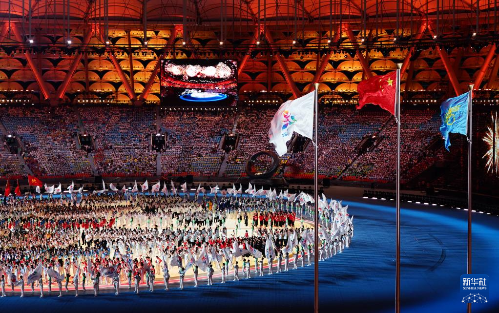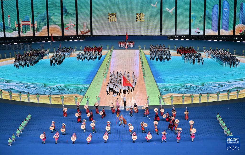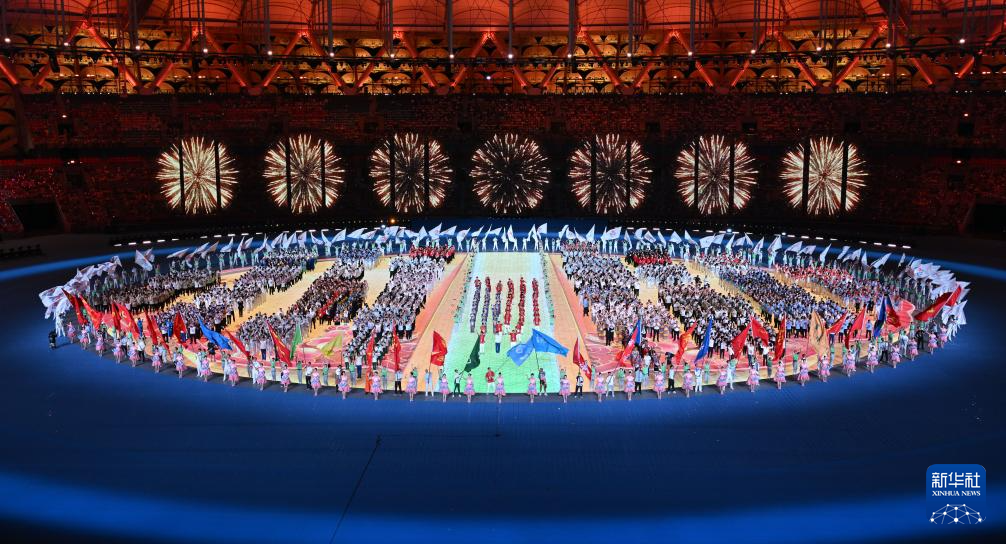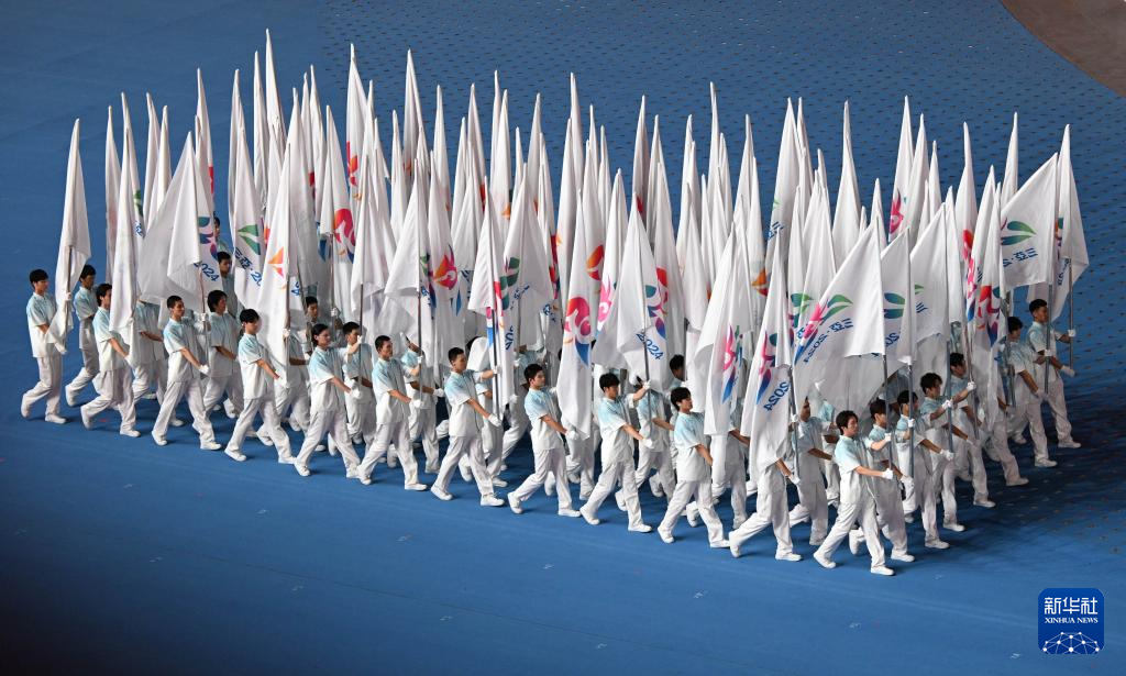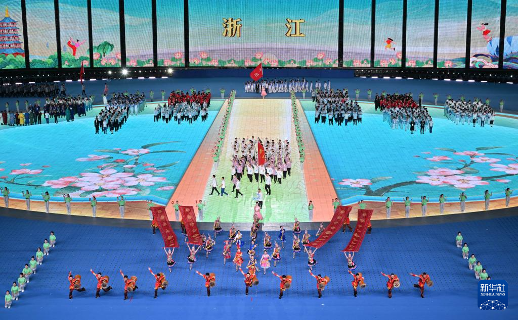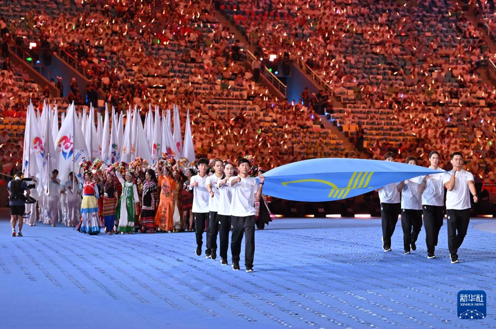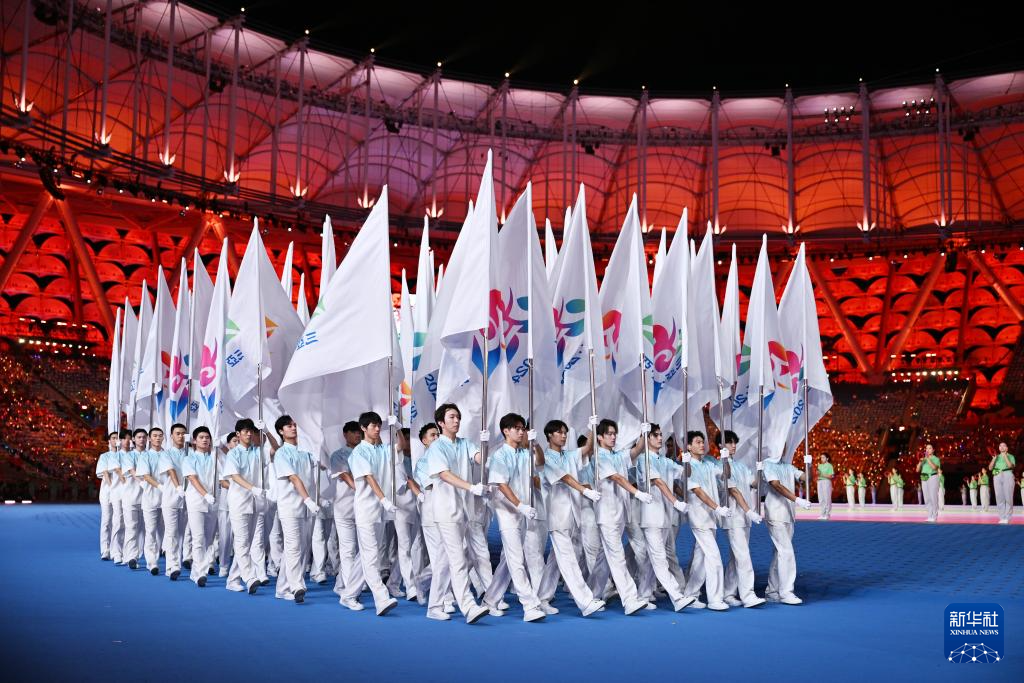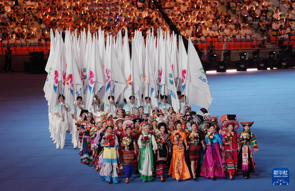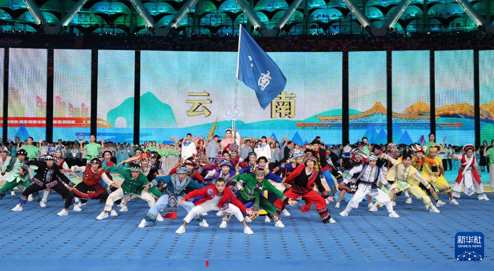 11月22日,中華人民共和國第十二屆少數民族傳(chuan) 統體(ti) 育運動會(hui) 會(hui) 旗方陣在開幕式上入場。