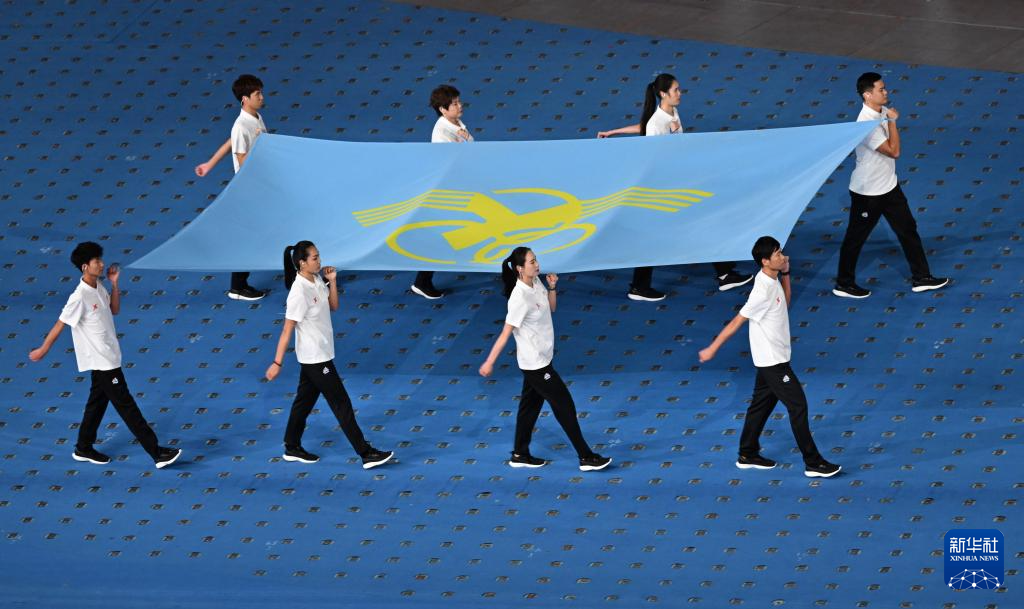 11月22日,中華人民共和國少數民族傳(chuan) 統體(ti) 育運動會(hui) 會(hui) 旗在開幕式上入場。