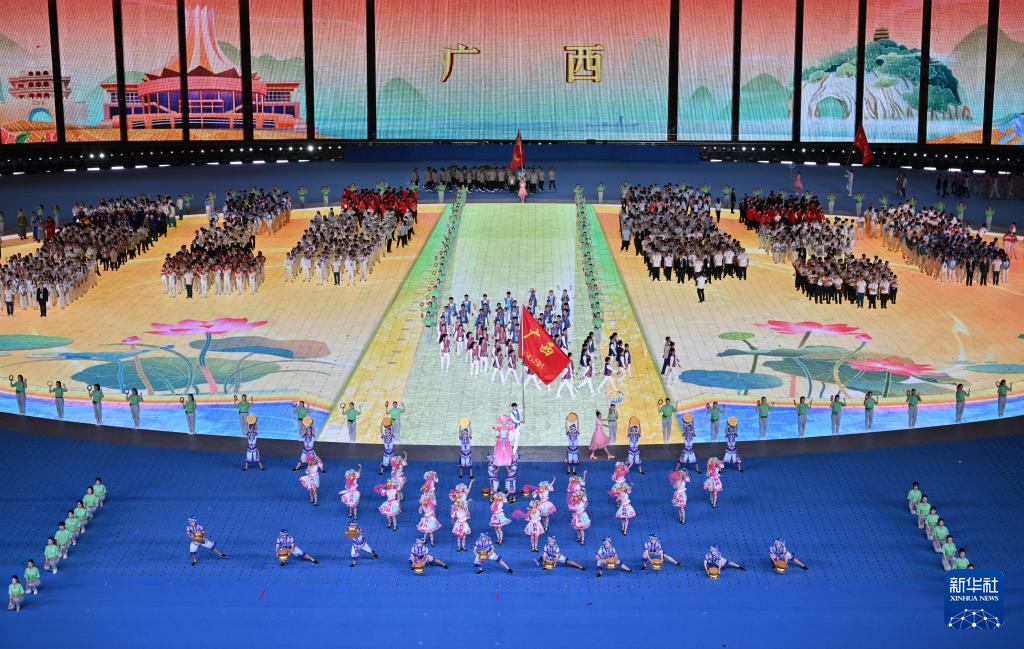 11月22日,廣西壯族自治區代表團在開幕式上入場。