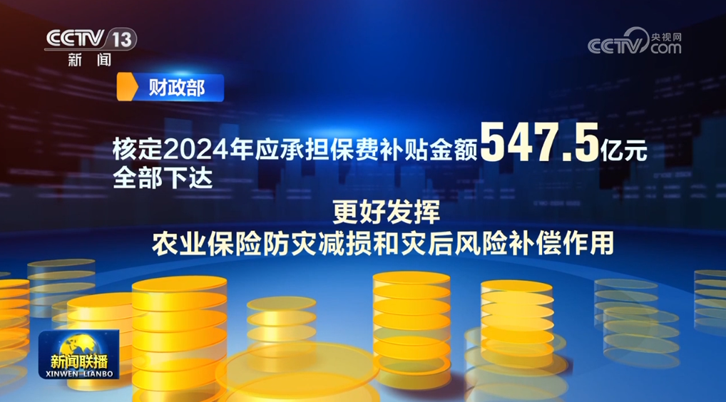 2024年中央財政農(nong) 業(ye) 保險保費補貼全部下達