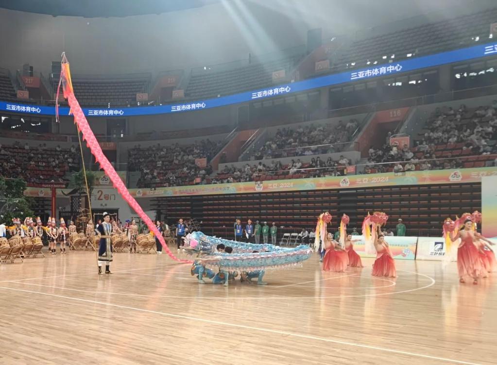 唐寶(左)手持巨龍,在本屆運動會(hui) 表演項目比賽中。受訪者供圖