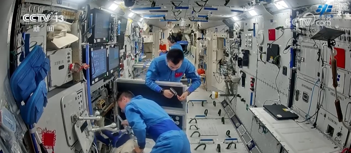 在空間站內(nei) 設備檢查維護方麵,上周,乘組完成了太空跑台檢查維護、再生生保係統維護等工作。在空間站內(nei) 環境監測方麵,分別開展了個(ge) 人噪聲暴露劑量測量、風速及溫度測量等工作。在站務管理方麵,對各艙段定期進行了清潔及檢查維護。相關(guan) 工作有效保障了航天員在軌安全、空間站正常可靠運行。