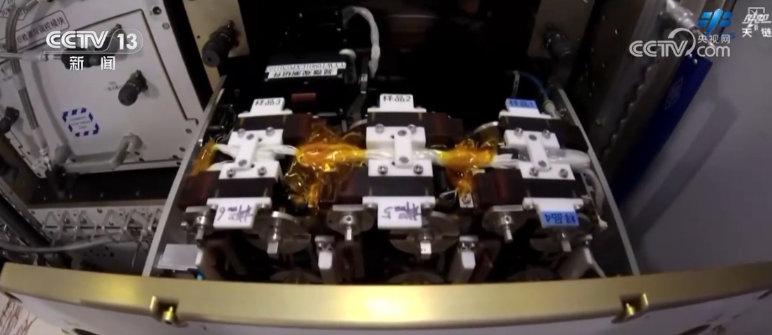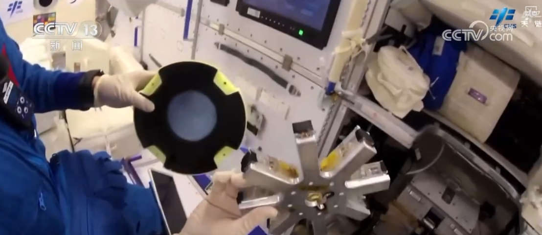乘組還完成了流體(ti) 物理實驗櫃固液介觀實驗單元樣品盤檢查、實驗樣品更換,無容器櫃實驗腔體(ti) 樣品清理、實驗樣品更換、軸心機構電極維護等多項操作。