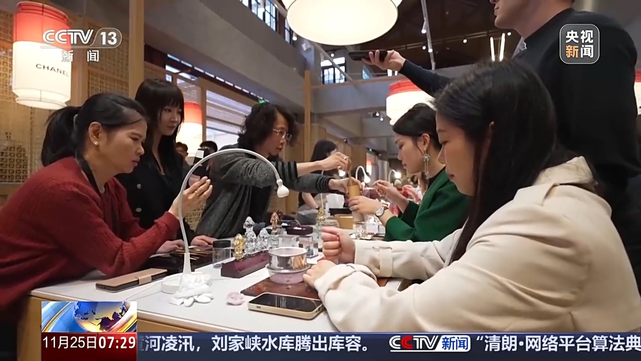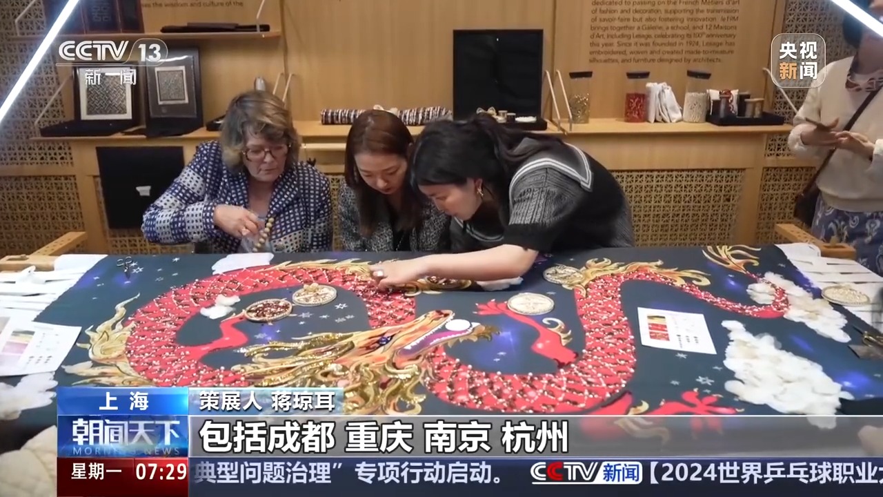 總台央視記者 高媛:我身後這個(ge) 不大的空間裏擠滿了人,這裏聚集了17個(ge) 來自法國的品牌。它們(men) 展出的不隻是產(chan) 品,而是背後的工藝。精美的產(chan) 品變成了一針一線的故事,觀眾(zhong) 還可以參與(yu) 其中。