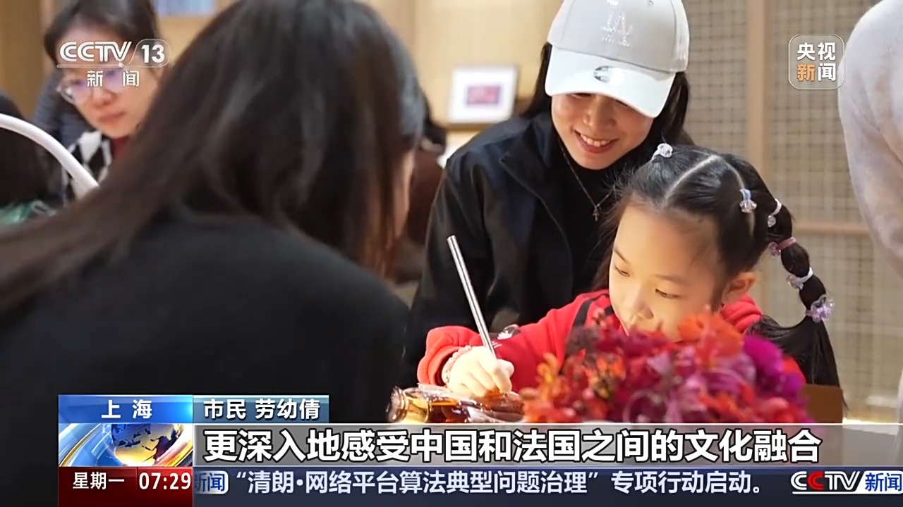 上海市民 勞幼倩:這邊有很多體(ti) 驗區域,讓小朋友也有動手能力,更深入地感受中國和法國之間的文化融合。