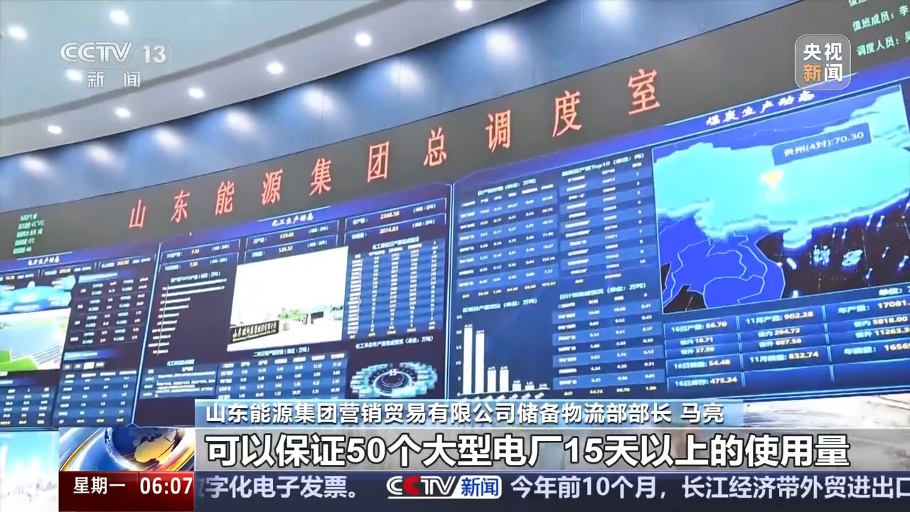山東(dong) 能源集團營銷貿易有限公司儲(chu) 備物流部部長 馬亮:可調度煤炭儲(chu) 備完成504.67萬(wan) 噸,可以保證50個(ge) 大型電廠15天以上的使用量。