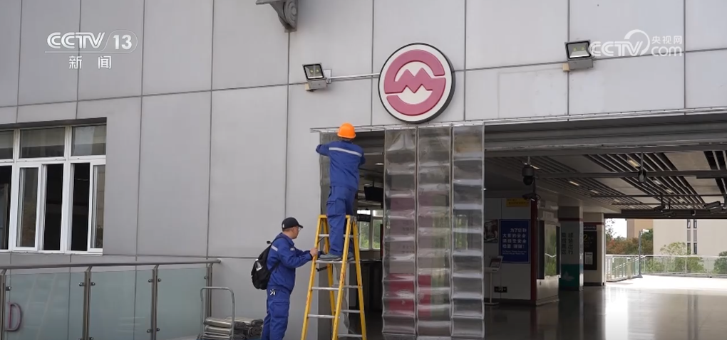 在上海軌道交通11號線白銀路站1號口,物業(ye) 師傅們(men) 正在安裝擋風門簾。檢修人員也第一時間排查空調等設備,並做好防凍應對措施。