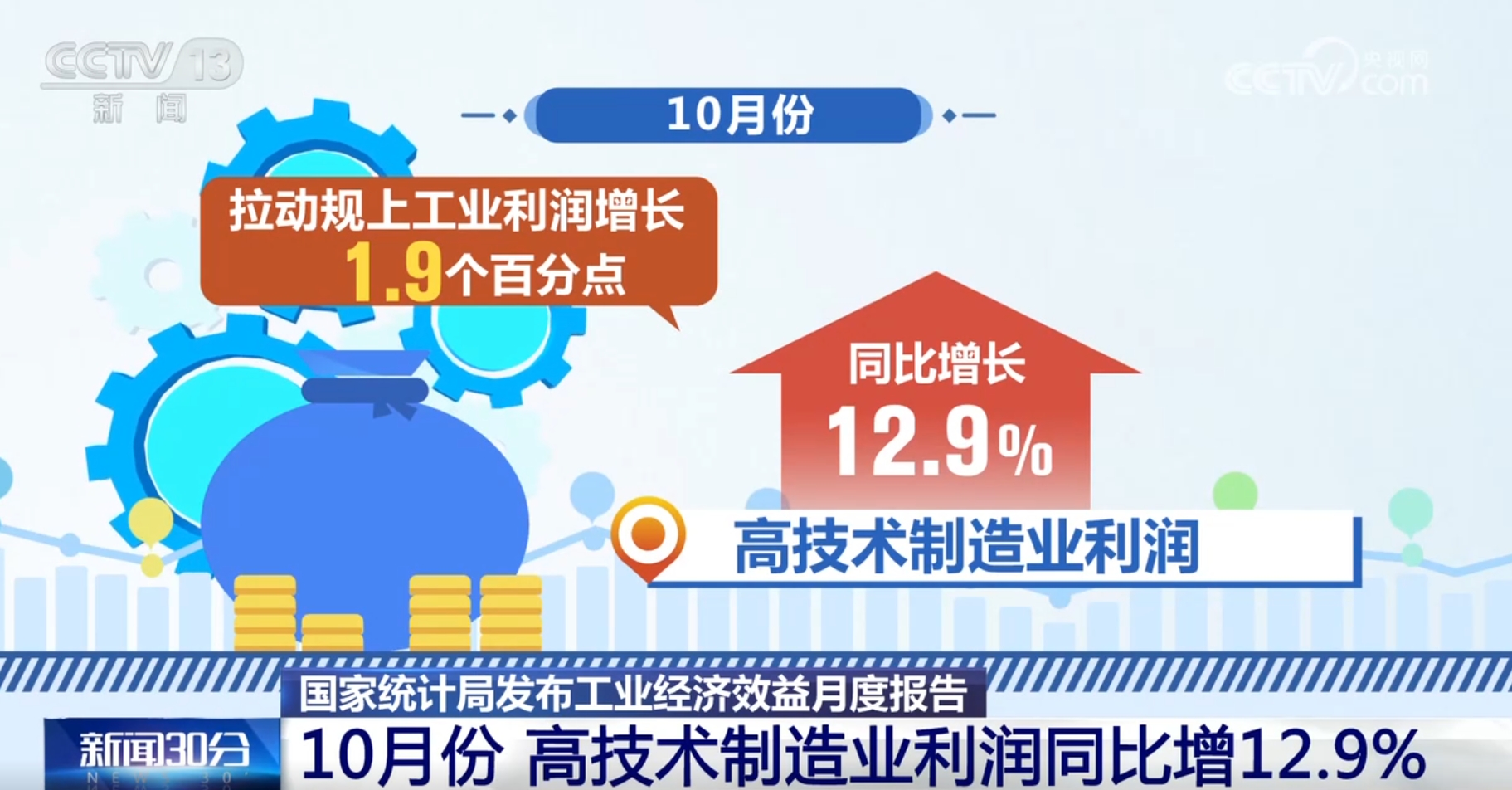 高技術製造業(ye) 支撐和帶動作用顯現,10月份,高技術製造業(ye) 利潤同比增長12.9%,拉動規上工業(ye) 利潤增長1.9個(ge) 百分點。其中,可穿戴智能設備製造、敏感元件及傳(chuan) 感器製造等行業(ye) 利潤同比分別增長73.3%、48.8%。