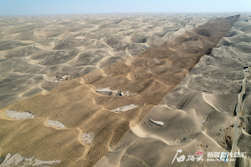 一年多來,“鎖邊”任務涉及的喀什、和田、巴音郭楞蒙古自治州多地因地製宜、分類施策,通過生物治沙、工程固沙、光伏治沙多措並舉(ju) ,順利實現鎖邊“合龍”。