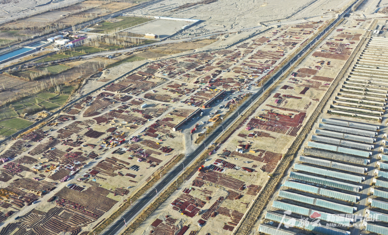 315國道策勒縣段兩(liang) 側(ce) 的千畝(mu) 紅棗晾曬場(11月29日無人機攝)。
