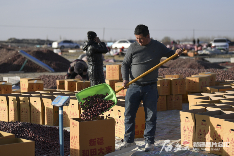 11月29日,農(nong) 民在晾曬場將晾曬好的紅棗裝箱。