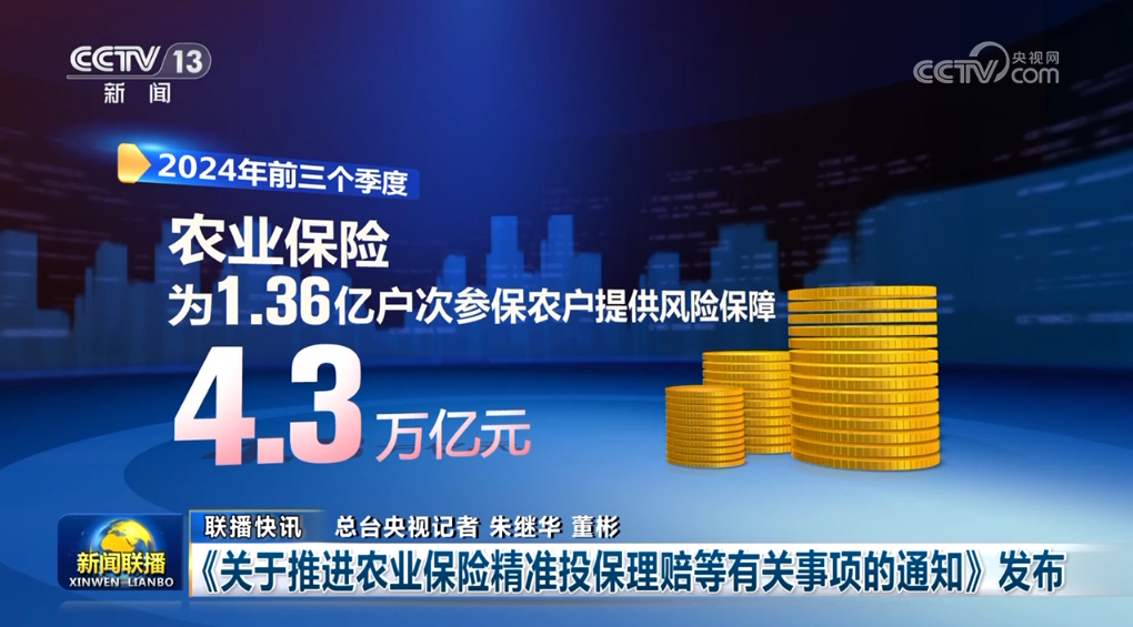 金融監管總局等四部門近日聯合發布通知,對農(nong) 業(ye) 保險投保理賠、應收保費、條款費率、數據共享等提出要求,進一步提高投保理賠精準性,推動我國農(nong) 業(ye) 保險高質量發展。今年前三個(ge) 季度,農(nong) 業(ye) 保險為(wei) 1.36億(yi) 戶次參保農(nong) 戶提供風險保障4.3萬(wan) 億(yi) 元。