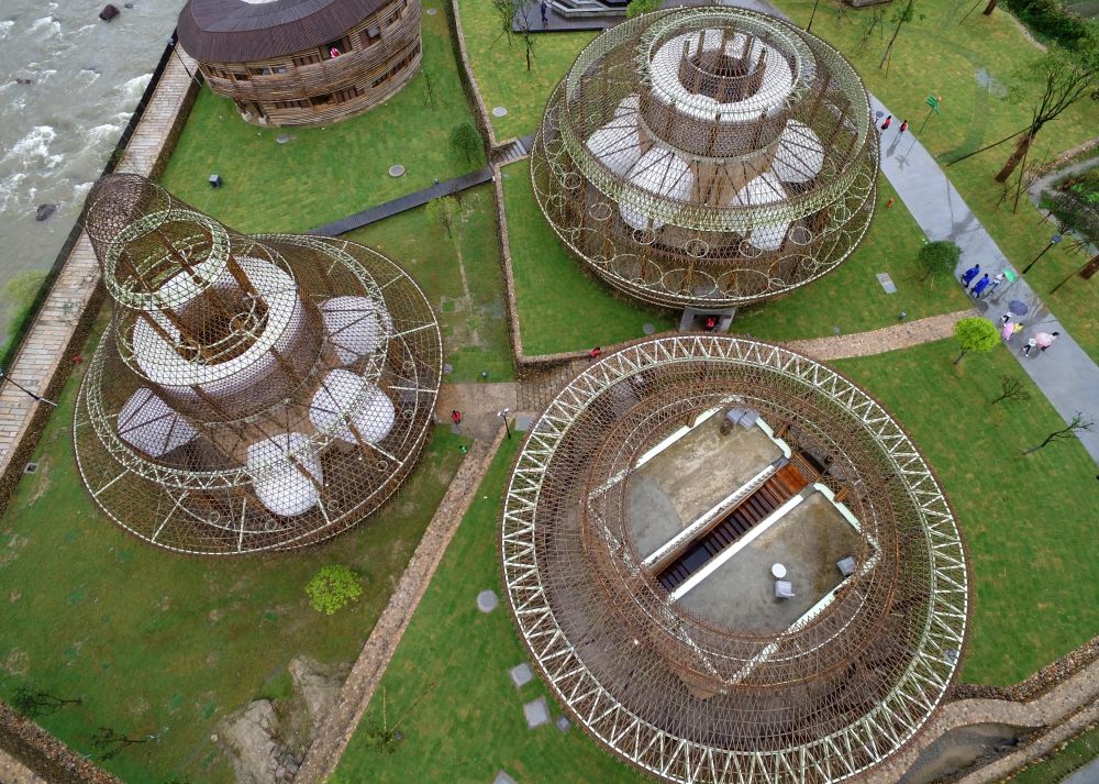 緊接著,設計師們(men) 聯手用竹子打造了一個(ge) 充滿設計感的竹藝村落——龍泉國際竹建築文創生活村落。