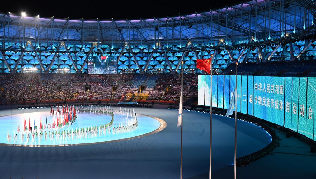 30日晚,第十二屆全國少數民族傳(chuan) 統體(ti) 育運動會(hui) (以下簡稱“運動會(hui) ”)在三亞(ya) 市體(ti) 育中心舉(ju) 行閉幕式。全部比賽已在29日結束。過去的9天,56個(ge) 民族歡聚一堂,訴說手足之情,唱響團結之歌。本屆運動會(hui) 共設競賽項目18項149個(ge) 小項、表演項目三大類170個(ge) 小項。近7000名各族運動員團結拚搏、友好互助,在競賽和聯歡中加深情誼,寫(xie) 下共赴美好生活的新篇章。