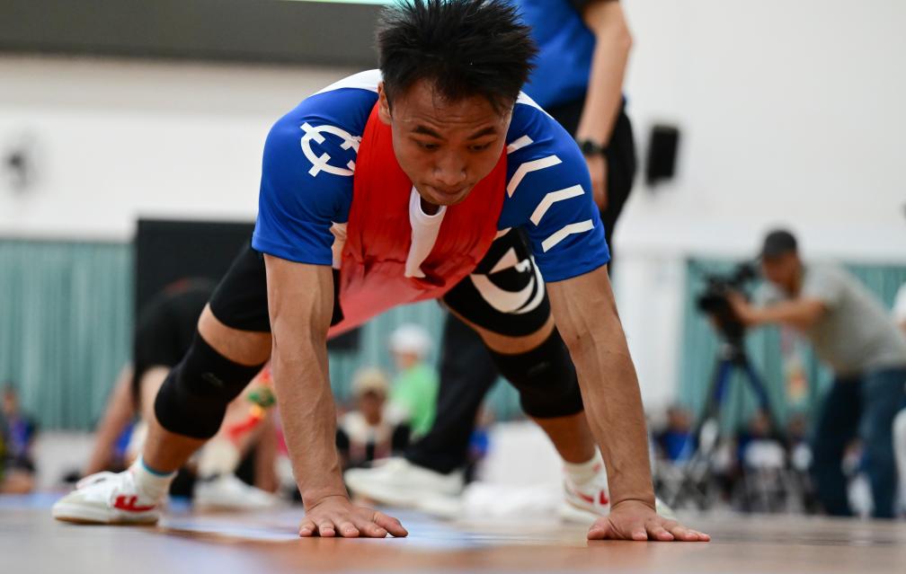 貴州代表團的張仁信在27日獲得押加項目55公斤級一等獎。平日裏的他是一位礦山救護隊員。為(wei) 了備賽減重,張仁信20多天沒有進食碳水類食品,“我堅持了好幾年,也算給自己一個(ge) 交代”。
