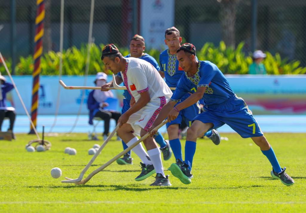 山海難擋情意濃。在24日的表演項目裏,10多名來自新疆和田地區於(yu) 田縣各行各業(ye) 的隊員帶來了麥熱球表演。山高路遠,他們(men) 曆時三天才抵達三亞(ya) 。“我們(men) 想向全國人民展示麥熱球這項運動,在場外和大家多交流,讓各族人民了解南疆的發展變化。”隊長吾買(mai) 爾江說。