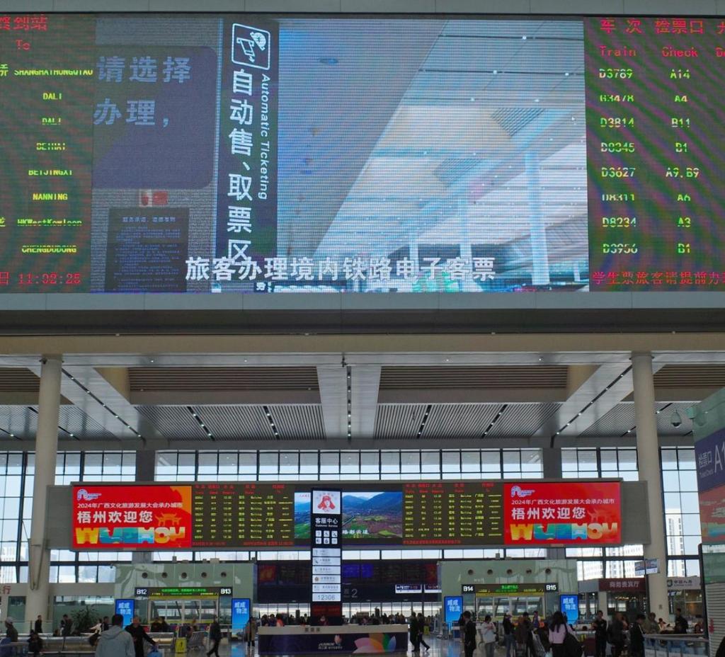 12月1日,在廣西南寧市南寧東(dong) 站,車站大屏正播放鐵路電子客票服務宣傳(chuan) 片。 新華社記者李歡 攝