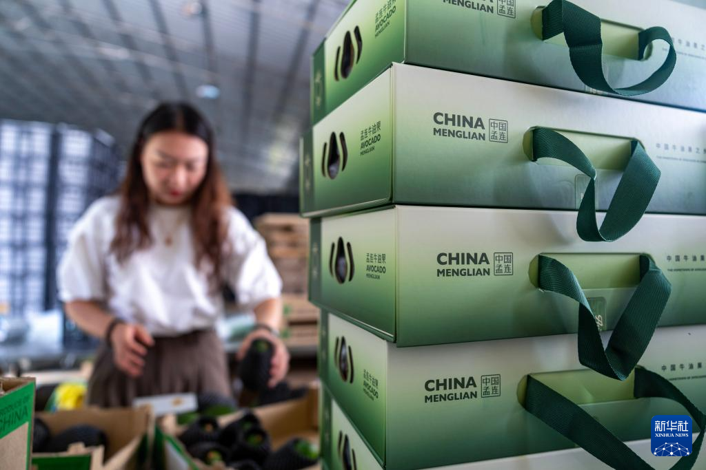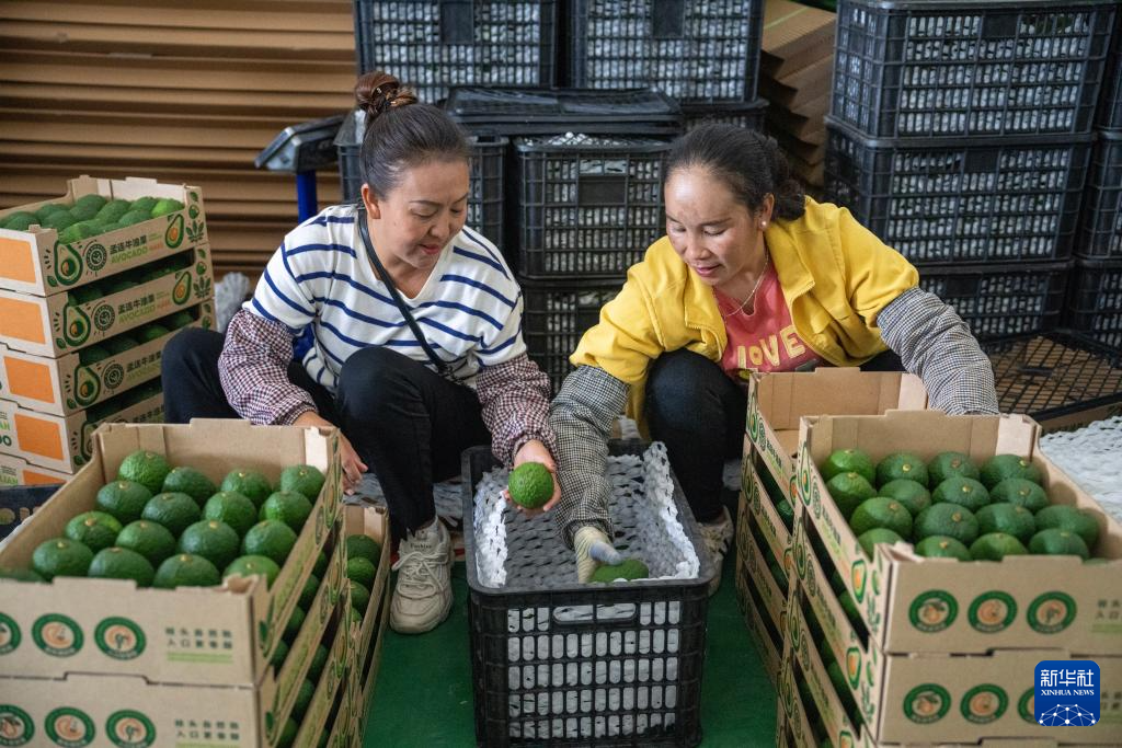 工人在中國孟連牛油果集配中心內(nei) 包裝分選後的牛油果(10月29日攝)。新華社記者 陳欣波 攝