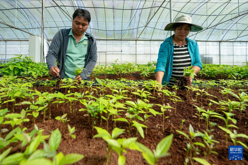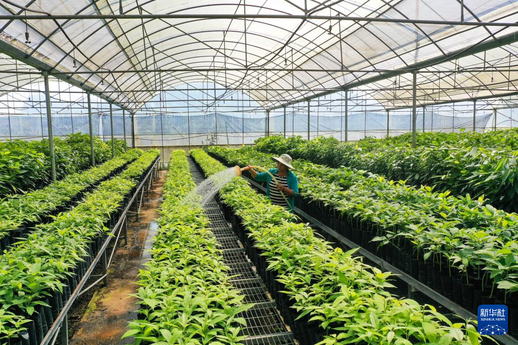 兩(liang) 名工作人員在普洱綠銀生物股份有限公司的牛油果種苗基地打理種苗(10月28日攝)。新華社記者 陳欣波 攝