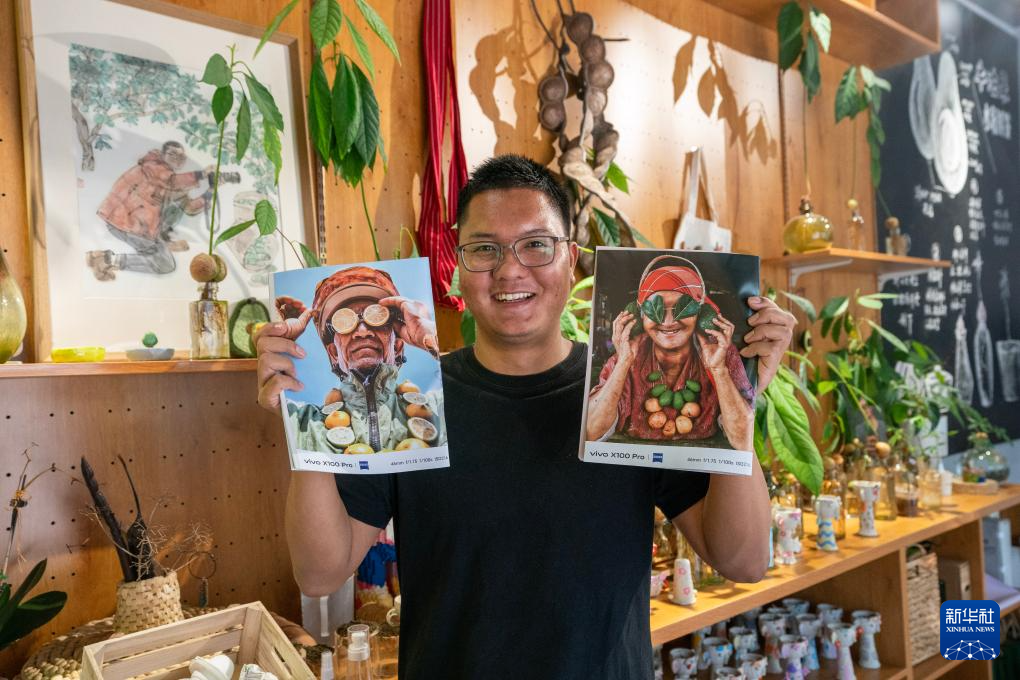 孟連縣“新農(nong) 人”、“牛友果星球”工作室主人李偉(wei) 展示自己拍攝的創意照片(10月28日攝)。新華社記者 陳欣波 攝