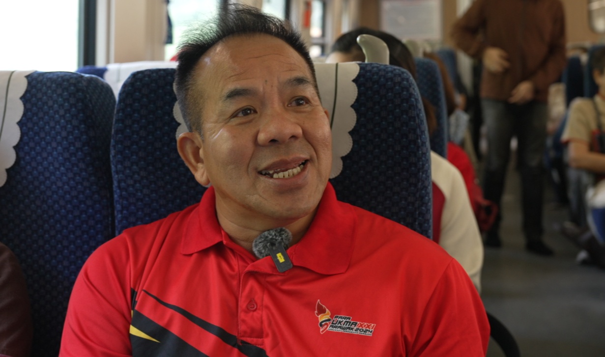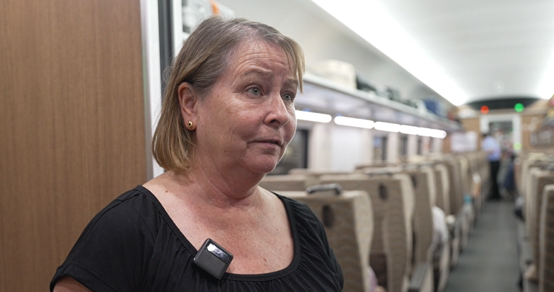 黃複勝:“我感覺坐了這個(ge) 火車,覺得很舒服,然後很快就可以進火車,check in(進站)和 check out(出站)都是很方便的。”