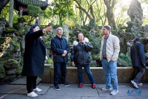 天一閣作為(wei) 中國現存最古老的私人藏書(shu) 樓之一,深深吸引了外國記者的注意。天一閣內(nei) 保存了豐(feng) 富的古籍與(yu) 文化遺產(chan) ,展現了寧波作為(wei) “文化名城”的深厚底蘊。講解員向記者們(men) 詳細地介紹了天一閣的曆史背景和文化價(jia) 值,講述了“書(shu) 藏古今、港通天下”的文化內(nei) 涵,使記者們(men) 對寧波的文化曆史有了更深的理解。
