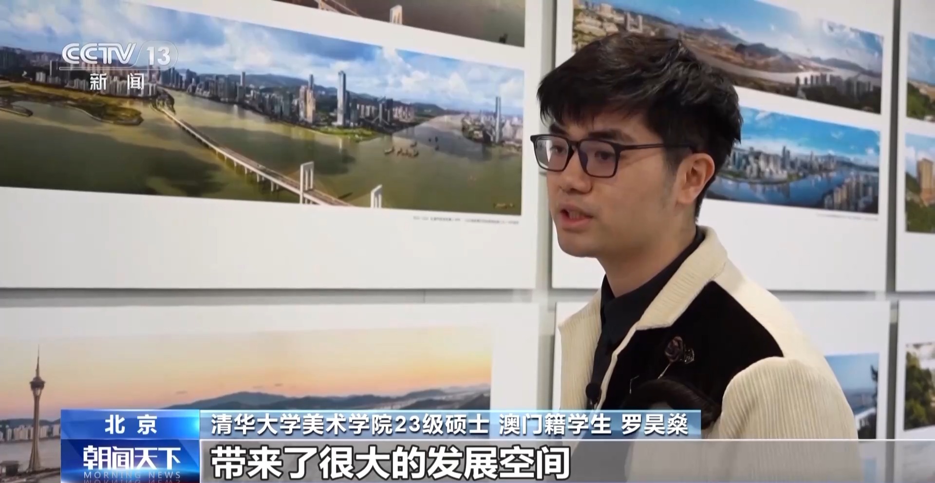 清華大學美術學院23級碩士 澳門籍學生 羅昊燊:我家就在老城區這塊,從(cong) 小在這裏長大,這麽(me) 多年還保留了澳門原來的文化色彩。主要是發展周邊的一些區域。我也看著周圍從(cong) 荒蕪空地,發展成很多高樓大廈。它的建設為(wei) 我們(men) 年輕人帶來了很大的發展空間。