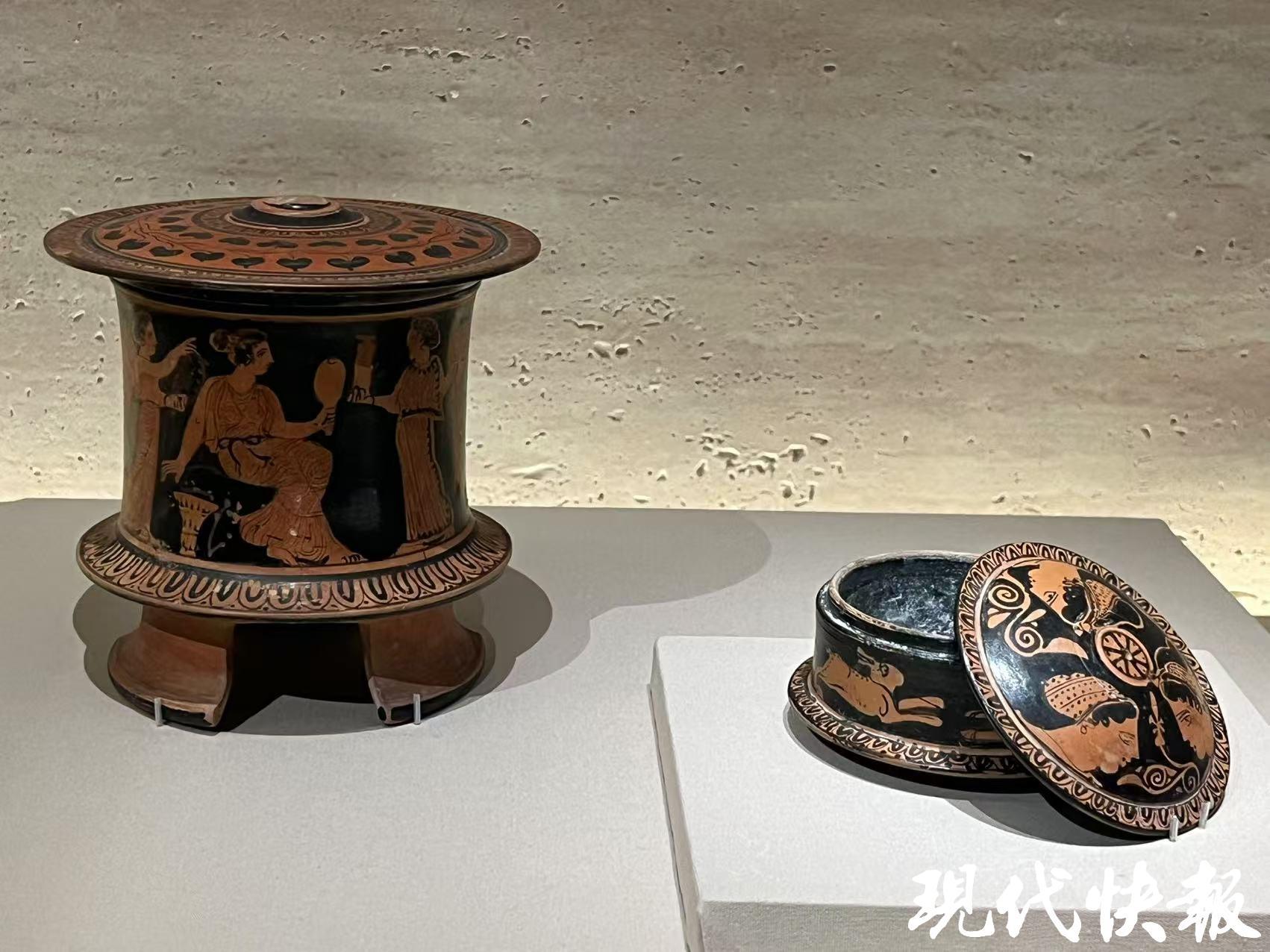 “美的多元——古希臘的藝術與(yu) 生活”中展出的黑底紅畫帶蓋化妝盒