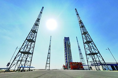 11月29日拍攝的海南商業(ye) 航天發射場二號發射工位和等待發射的長征十二號火箭。新華社記者 蒲曉旭攝