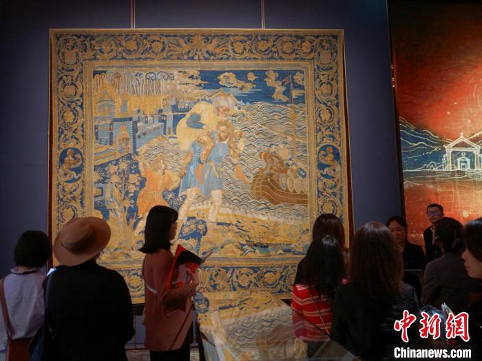 11月15日,澳門保利美高梅博物館正式開幕。圖為(wei) 觀眾(zhong) 參觀初代澳門總督馬士加路也所訂製的掛毯。中新社記者 鄭嘉偉(wei) 攝
