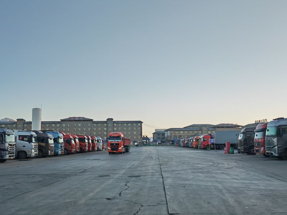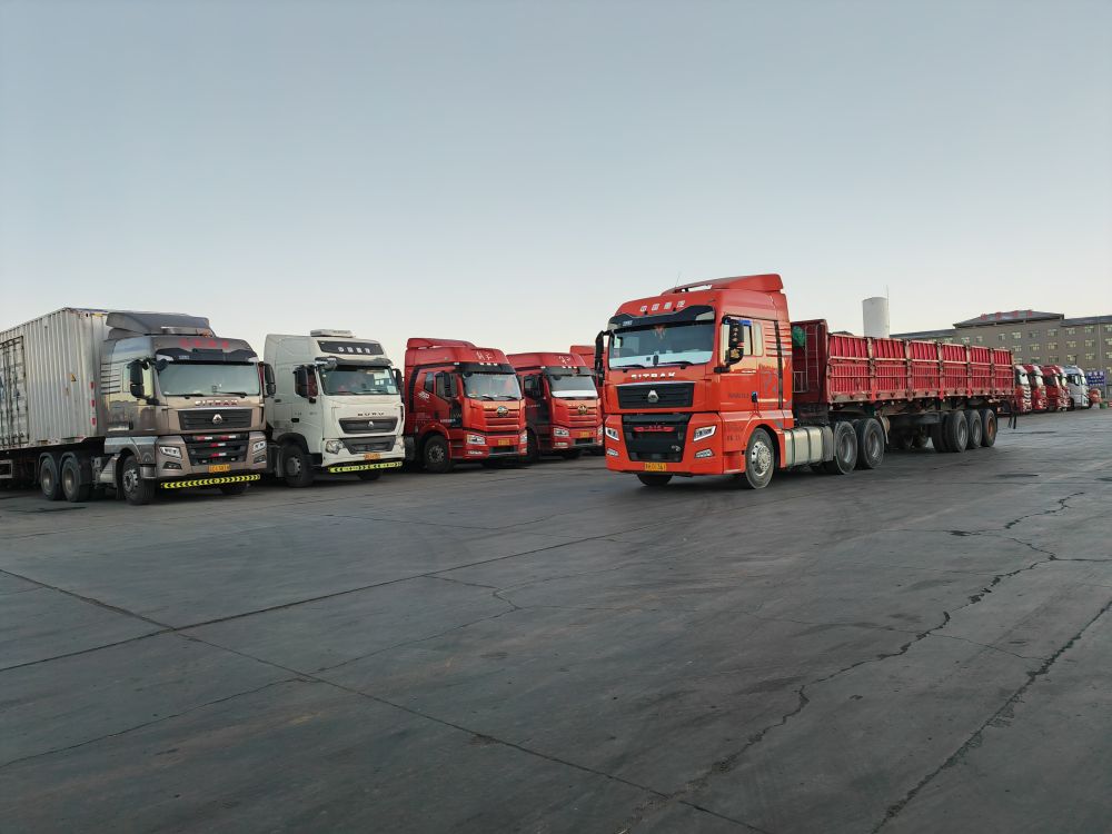 青海省格爾木昆侖(lun) 物流園內(nei) 的貨車整齊排列。新華社記者 王浡 攝