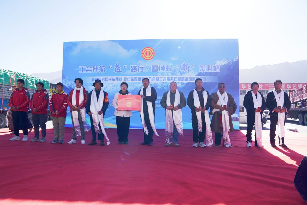 12月5日,西藏自治區貨車司機、網約車司機集中入會(hui) 暨工會(hui) 服務在基層活動啟動儀(yi) 式在拉薩城投物流園舉(ju) 行。新華社發