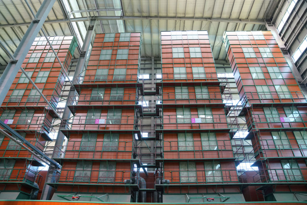 在橋圩鎮一家生產(chan) 企業(ye) 的標準化廠房內(nei) ,高絨分毛機正在生產(chan) 。新華社記者 楊馳 攝