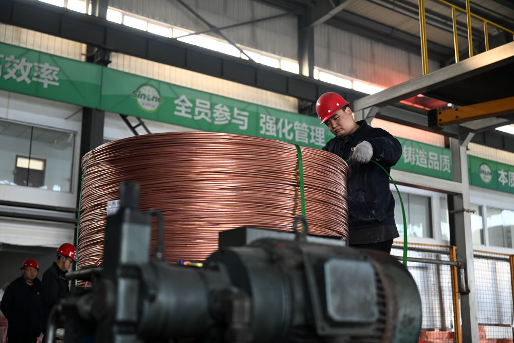 工人在天津新能再生資源有限公司銅杆車間工作。新華社記者 趙子碩 攝