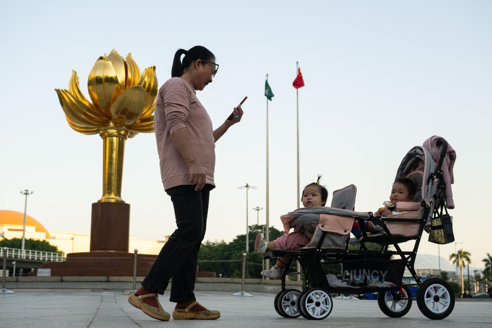 2024年12月2日,市民在澳門金蓮花廣場散步。新華社發(張金加攝)