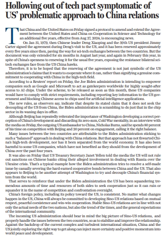 協定原定於(yu) 2023年8月再次續簽,盡管中方對按慣例續簽5年始終表示歡迎態度,但當時協定隻短期延長了6個(ge) 月,今年2月到期後,又再次延長6個(ge) 月,這一動向,也暴露出美國對華鷹派對中美間科技交流所持有的反對態度。