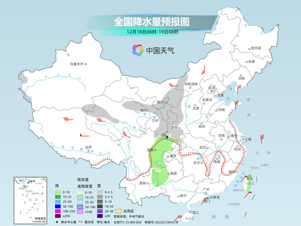 明天,內(nei) 蒙古中東(dong) 部、山西西部和北部、河北北部等地部分地區有小雪。陝西南部、四川盆地西部、貴州西部、雲(yun) 南東(dong) 北部及台灣島等地部分地區有小雨。