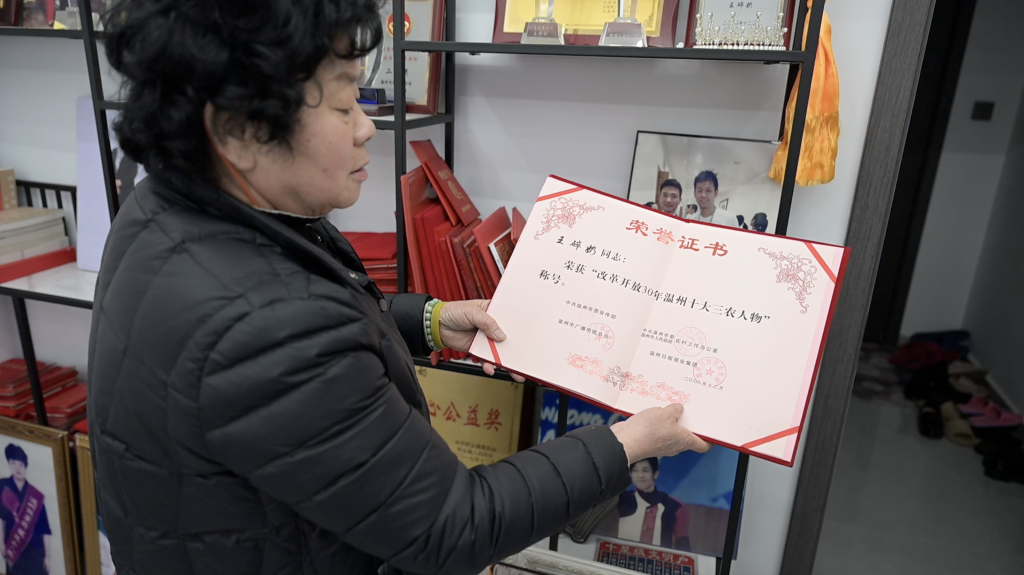 圖為(wei) 王碎奶在家中展示榮譽證書(shu) 。新華社記者 劉銘翔 攝
