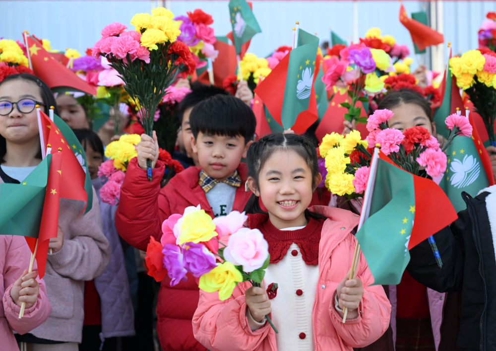 12月18日下午,中共中央總書(shu) 記、國家主席、中央軍(jun) 委主席習(xi) 近平乘專(zhuan) 機抵達澳門,出席將於(yu) 20日舉(ju) 行的慶祝澳門回歸祖國25周年大會(hui) 暨澳門特別行政區第六屆政府就職典禮,並視察澳門。這是歡迎人群。新華社記者 謝環馳 攝