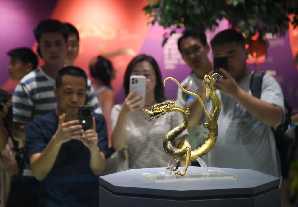 遊客在陝西曆史博物館參觀、拍照(2024年8月6日攝)。 新華社記者 張博文 攝
