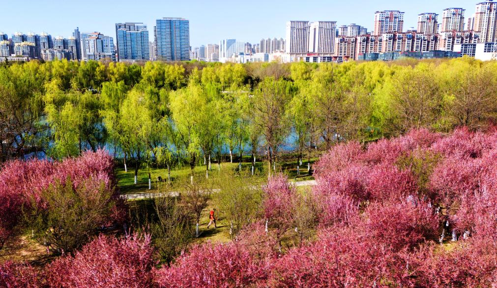 西安大明宮國家遺址公園(無人機照片,2024年3月29日攝)。 新華社記者 鄒競一 攝