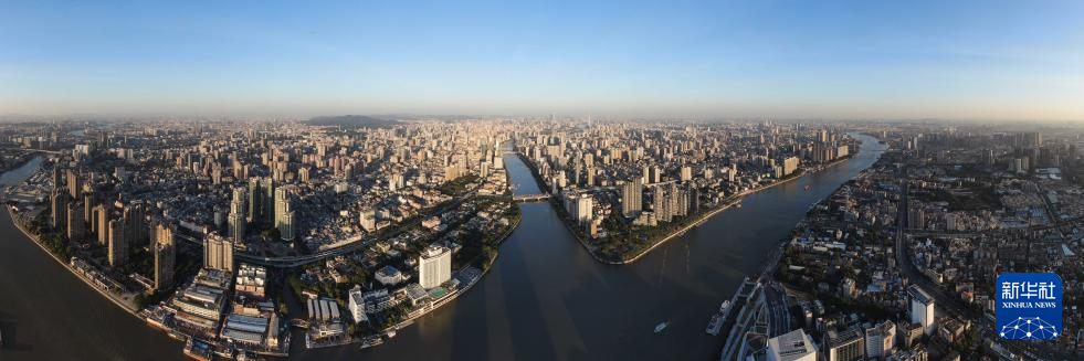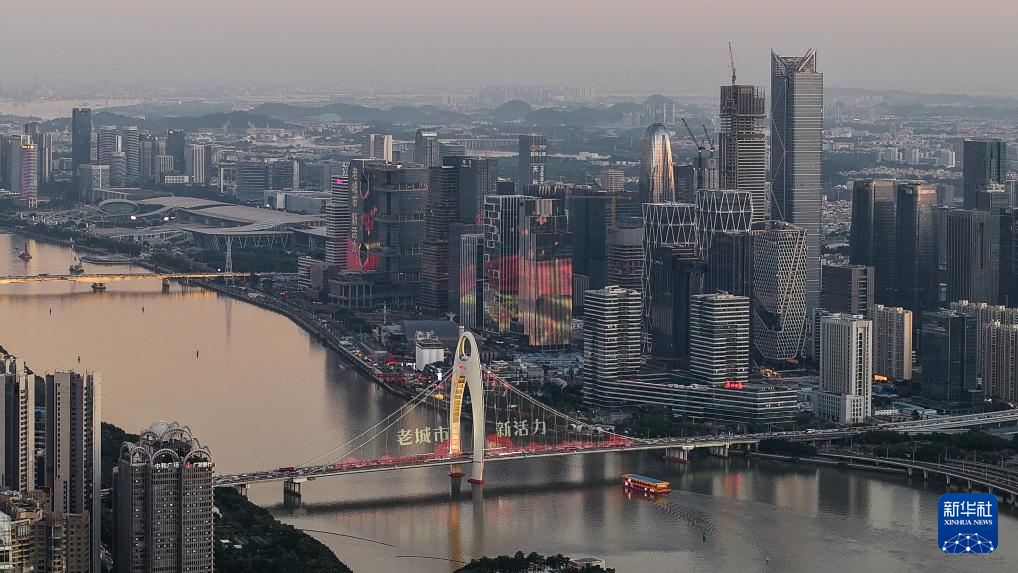 廣州市區沐浴在夕陽餘(yu) 暉之中(2024年11月29日攝,無人機照片)。
