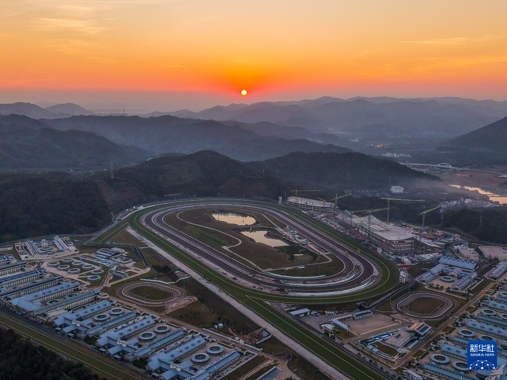 位於(yu) 廣州從(cong) 化良口鎮的香港賽馬會(hui) 從(cong) 化馬場正在進行改擴建工程(2024年12月2日攝,無人機照片)。