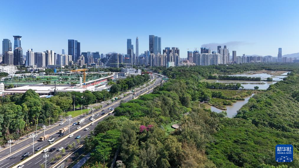 這是位於(yu) 深圳福田紅樹林濕地(2024年11月29日攝,無人機照片)。