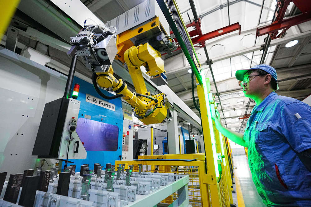 7月23日,在哈電集團哈爾濱汽輪機廠有限責任公司葉片加工智能化車間,工作人員在觀察智能機械臂運行情況。近年來,東(dong) 北三省加大力度推進傳(chuan) 統製造業(ye) 數字化改造,依靠科技創新“第一動力”,聚焦“卡脖子”領域,讓傳(chuan) 統產(chan) 業(ye) 增“智”提“質”。(新華社記者 王建威 攝)