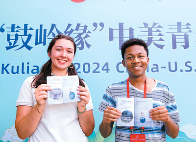 參加2024“鼓嶺緣”中美青年交流周活動的兩(liang) 名學生代表展示在鼓嶺“打卡”“蓋章”。新華社記者 魏培全攝