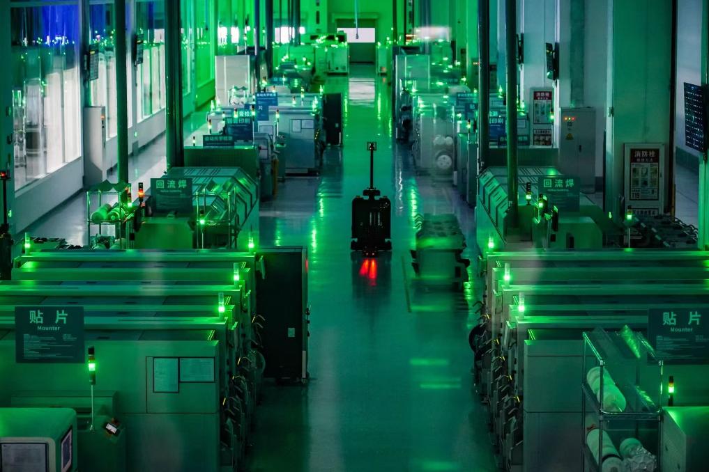 無數綠燈依次閃爍,少量工人巡檢其間……在這座達到業(ye) 界標杆水平的零碳智造工廠,“黑燈”模式下運作的電腦主板生產(chan) 線繁忙卻有序。“我們(men) 基於(yu) ‘端—邊—雲(yun) —網—智’新IT技術架構,使生產(chan) 效率提升200%。猜猜看,現在下線一塊主板、一台筆記本能有多快?”聯想天津工廠廠長於(yu) 小建給出的答案是,“9秒!”