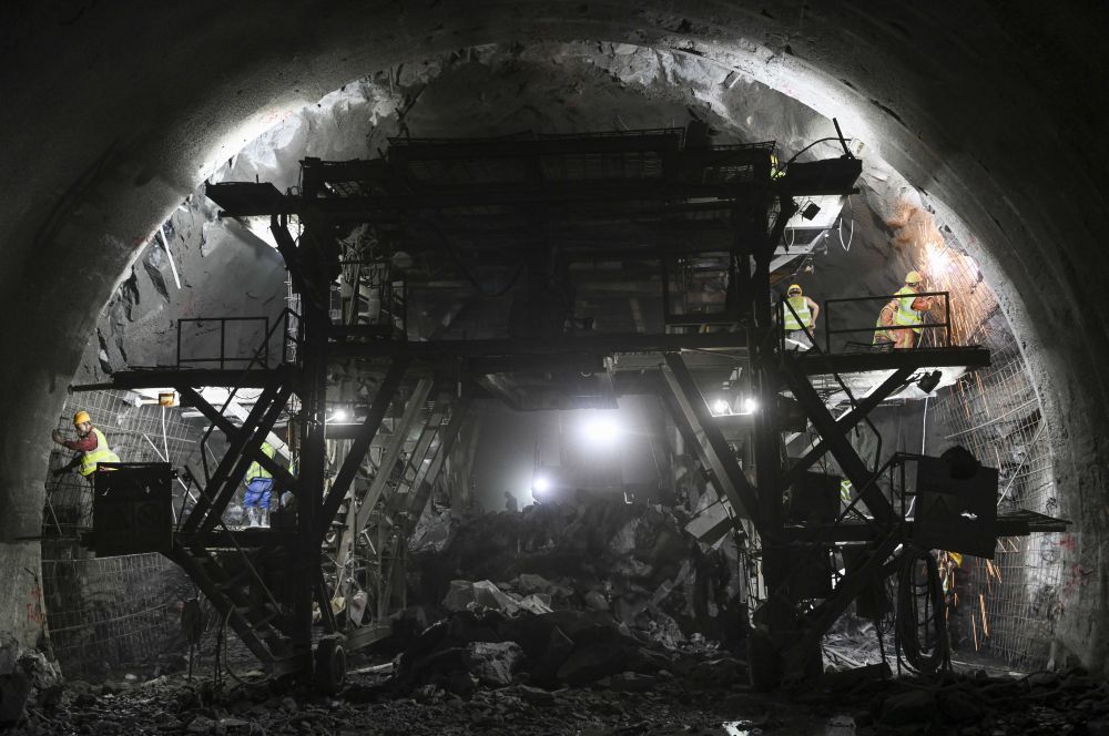 工人在新疆天山勝利隧道內(nei) 施工(12月25日攝)。新華社記者 胡虎虎 攝