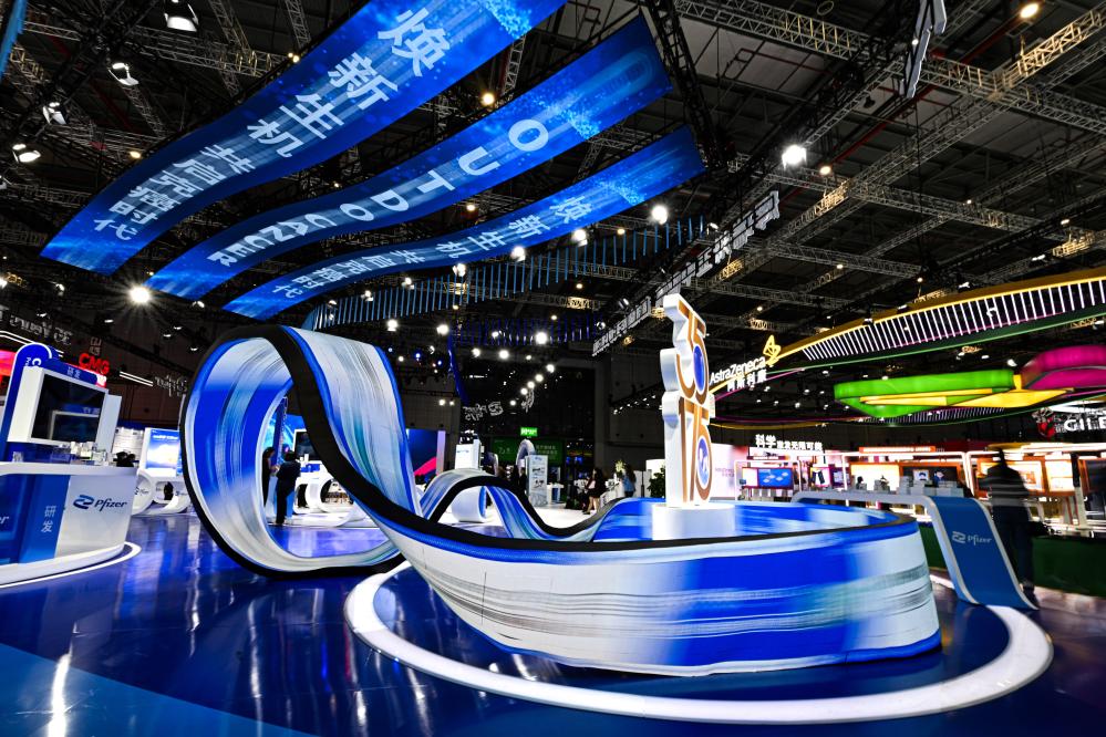 這是2024年11月8日在第七屆進博會(hui) 醫療器械及醫藥保健展區拍攝的輝瑞展台。新華社記者 辛悅衛 攝